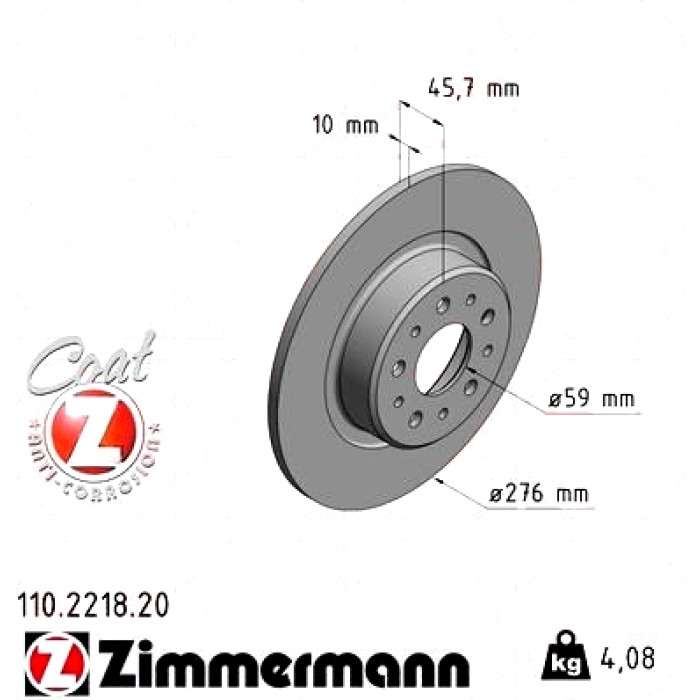 Задній гальмівний диск Zimmermann 110.2218.20 на ALFA ROMEO 156 (932_) з двигуном 1.9 JTD (932.AXN00, 932.BXE00) дата виробництва с 09.1997 по 10.2005