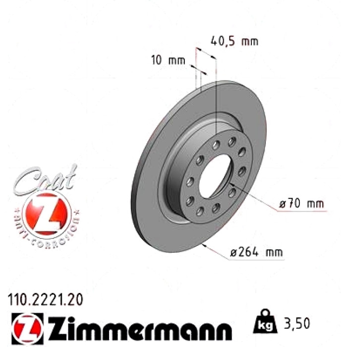 Задній гальмівний диск Zimmermann 110.2221.20 на ALFA ROMEO GIULIETTA (940_) з двигуном 2.0 JTDM (940.FYC1A, 940.FXQ1A) дата виробництва с 04.2010 по до н.ч.