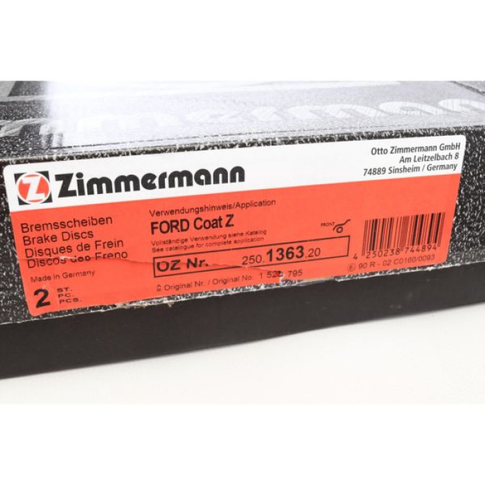 Ціна за штуку - гальмівні диски змінюються парами. Передній гальмівний диск Zimmermann для FORD FIESTA VI Van