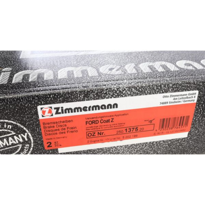 Передний тормозной диск Zimmermann 250.1375.20 на FORD MONDEO V СЕДАН (CD) с двигателем 2.0 TDCi дата производства с 09.2012 по до н.в.
