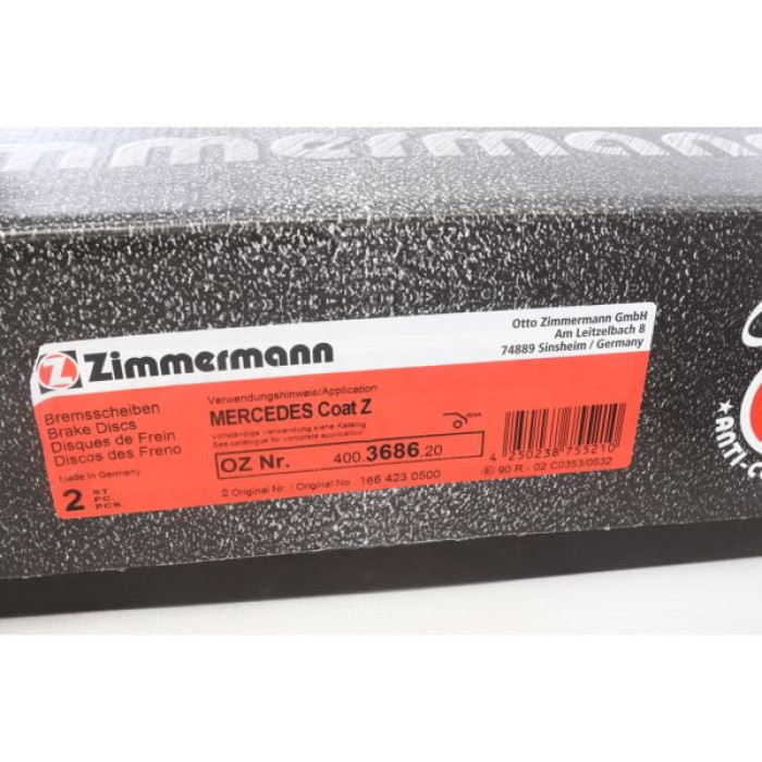 Задний тормозной диск Zimmermann 400.3686.20 на MERCEDES-BENZ M-CLASS (W166) с двигателем ML 300 4-matic (166.055) дата производства с 06.2011 по 12.2015