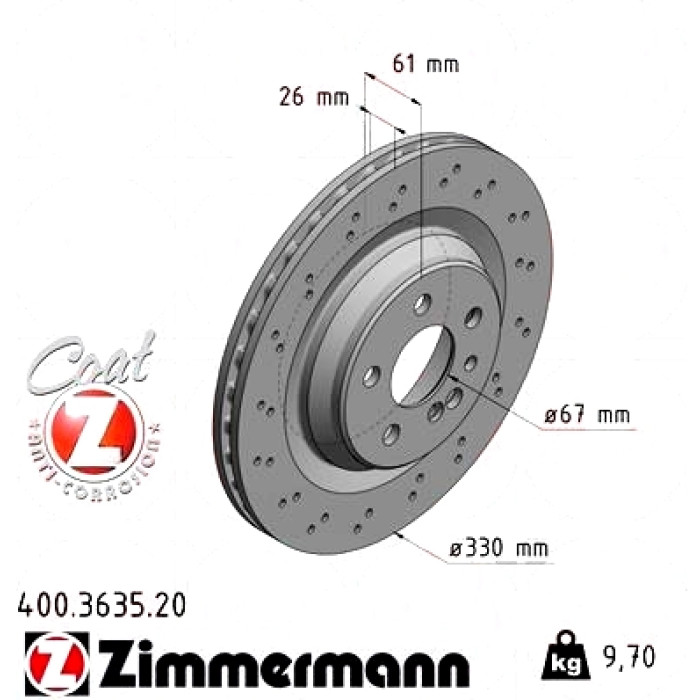 Задний тормозной диск Zimmermann 400.3635.20 на MERCEDES-BENZ S-CLASS КУПЕ (C215) с двигателем CL 600 (215.376) дата производства с 03.1999 по 12.2006