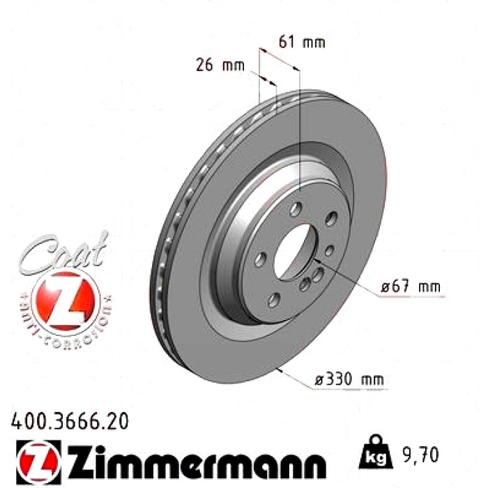 Задній гальмівний диск Zimmermann 400.3666.20 на MERCEDES-BENZ S-CLASS КУПЕ (C215) з двигуном CL 600 (215.376) дата виробництва с 03.1999 по 12.2006