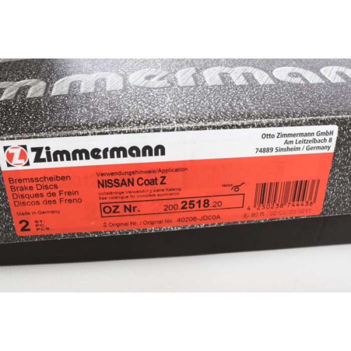 Передний тормозной диск Zimmermann 200.2518.20 на NISSAN X-TRAIL (T31) с двигателем 2.0 dCi FWD дата производства с 03.2007 по 12.2018