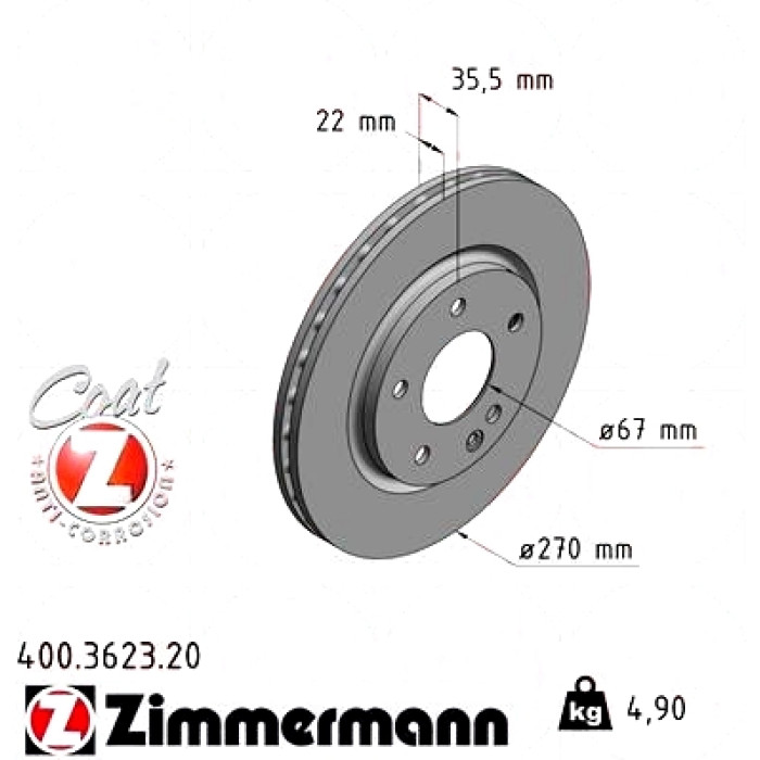 Передний тормозной диск Zimmermann 400.3623.20 на MERCEDES-BENZ VANEO (414) с двигателем 1.7 CDI (414.700) дата производства с 02.2002 по 07.2005