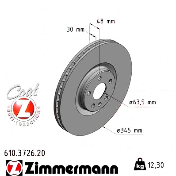 Передний тормозной диск 345x30 на VOLVO V60 II (225, 227) с двигателем D4 Zimmermann 610372620