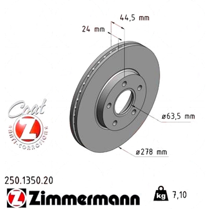 Передний тормозной диск Zimmermann 250.1350.20 на FORD TRANSIT CONNECT (P65_, P70_, P80_) с двигателем 1.8 Di дата производства с 06.2002 по 12.2013