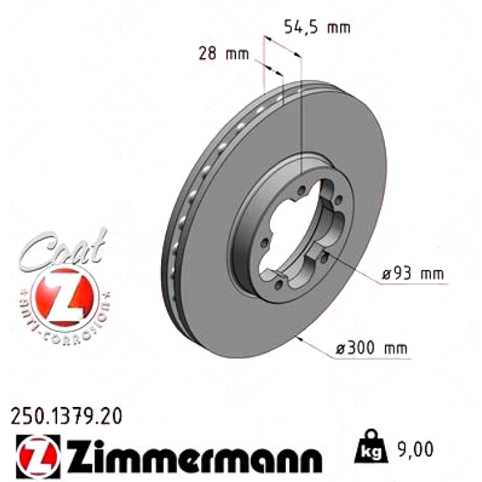 Передний тормозной диск Zimmermann 250.1379.20 на FORD TRANSIT Kasten (FA_ _) с двигателем 2.3 16V CNG RWD дата производства с 01.2000 по 05.2006