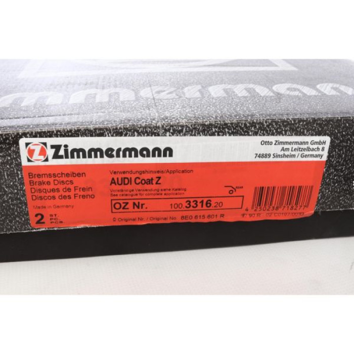Задний тормозной диск Zimmermann 100.3316.20 на AUDI A4 Avant (8ED, B7) с двигателем 3.2 FSI quattro дата производства с 11.2004 по 06.2008