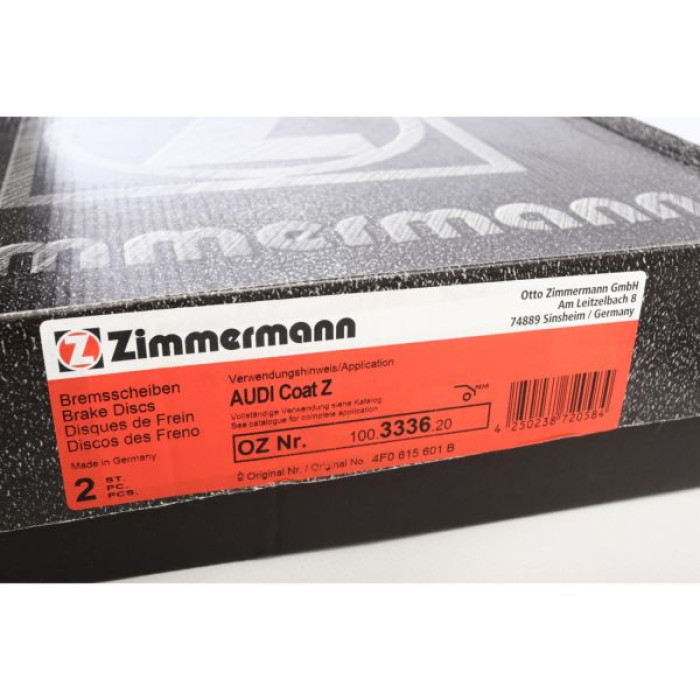 Цена за штуку - тормозные диски меняются парами. Zimmermann Coat Z для AUDI A6 (4F2, C6)