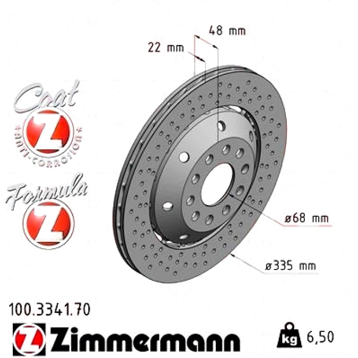 Задний левый тормозной диск Zimmermann Formula Z 100.3341.70 на AUDI A6 Avant (4B5, C5) с двигателем RS6 quattro дата производства с 11.1997 по 01.2005