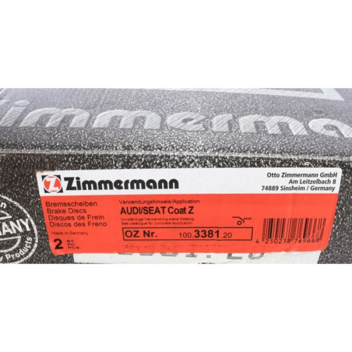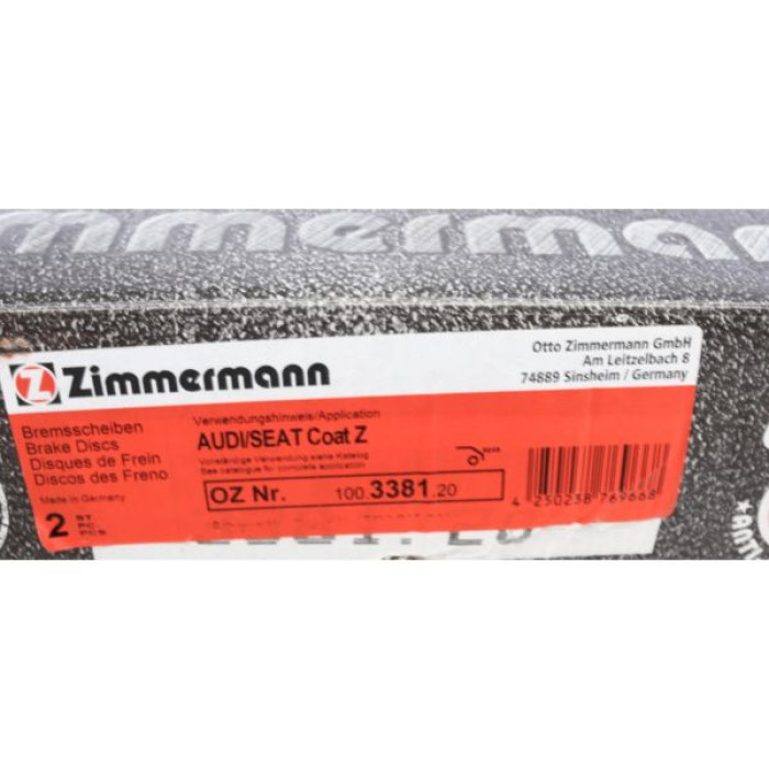 Задний тормозной диск Zimmermann 100.3381.20 на AUDI Q2 (GAB) с двигателем 2.0 TDI quattro дата производства с 06.2016 по до н.в.