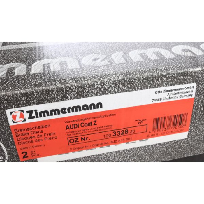 Цена за штуку - тормозные диски меняются парами. Zimmermann Coat Z для AUDI TT (8J3)