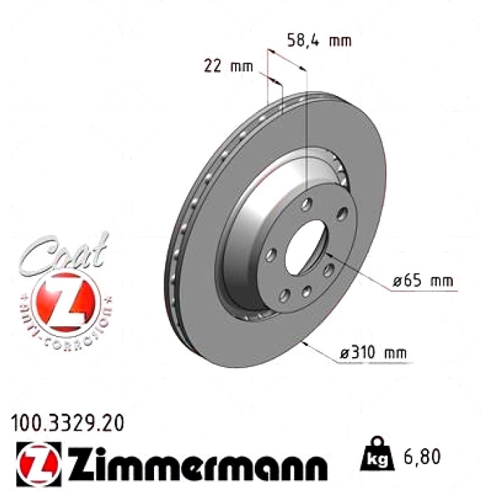 100.3329.20 Zimmermann Задний тормозной диск 310x22 на AUDI TT (8J3) с двигателем 3.2 V6 quattro