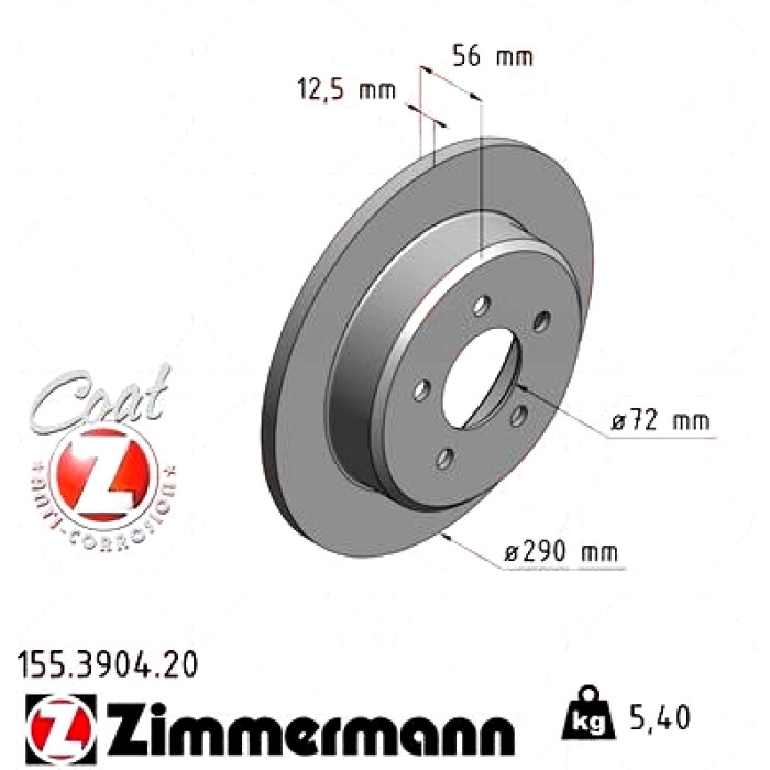 Задний тормозной диск 290x12,5 на CHRYSLER VOYAGER IV (RG, RS) с двигателем 2.8 CRD Zimmermann 155390420