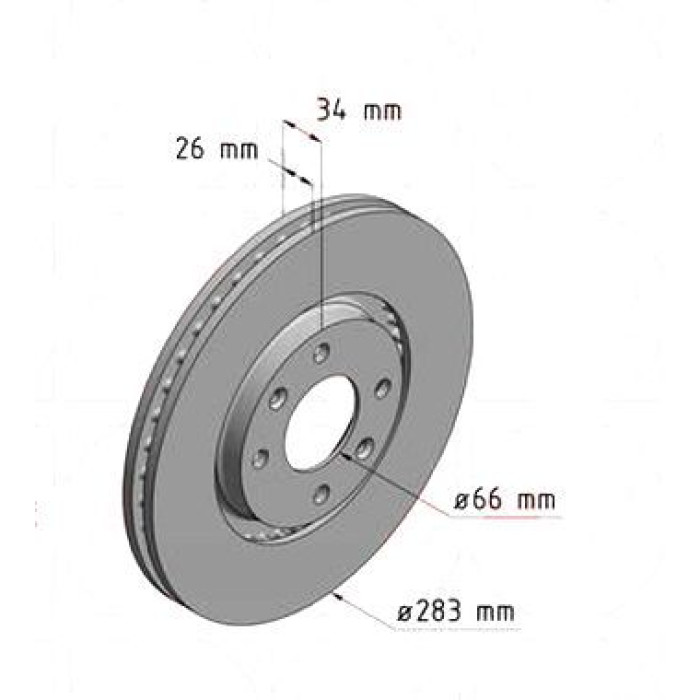Передний тормозной диск 283x26 на CITROËN BERLINGO / BERLINGO FIRST ФУРГОН (M_) с двигателем 1.6 16V (MBNFU) Zimmermann 440310620