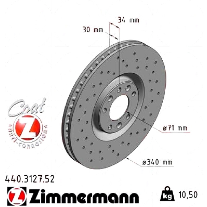Спортивный передний тормозной диск с перфорацией 340x30 на CITROËN DS4 с двигателем 2.0 BlueHDi 180 Zimmermann Sport Z 440312752
