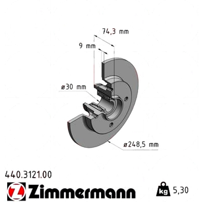 Задний тормозной диск Zimmermann 440.3121.00 на CITROËN DS4 с двигателем 1.6 HDi 115 дата производства с 03.2011 по 07.2015
