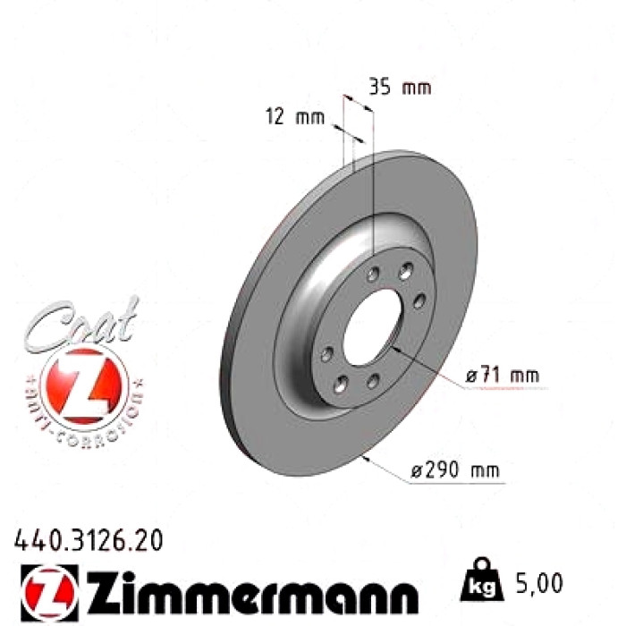 Задний тормозной диск Zimmermann 440.3126.20 на CITROËN DS4 с двигателем 1.6 THP 165 дата производства с 03.2011 по 07.2015