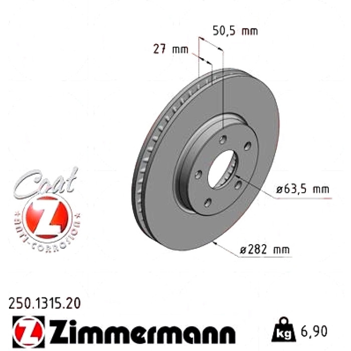 Передний тормозной диск 282x27 на FORD FOCUS IV (HN) с двигателем 2.0 EcoBlue Zimmermann 250131520