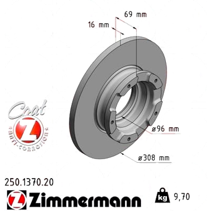 Задний тормозной диск Zimmermann 250.1370.20 на FORD TRANSIT CUSTOM V362 АВТОБУС (F3) с двигателем 2.2 TDCi дата производства с 04.2012 по до н.в.