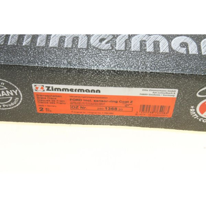 Цена за штуку - тормозные диски меняются парами. Zimmermann Coat Z для FORD TRANSIT CUSTOM V362 АВТОБУС (F3)