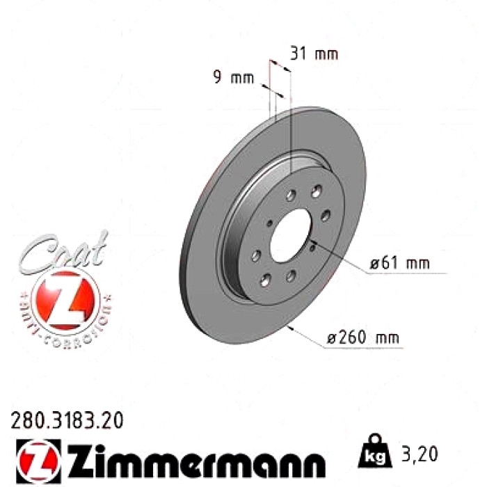 Задний тормозной диск 260x9 на HONDA INSIGHT (ZE_) с двигателем 1.3 Hybrid (ZE28, ZE2) Zimmermann 280318320