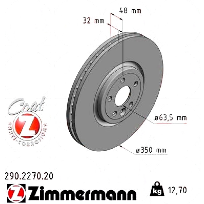 Передний тормозной диск 350x32 на JAGUAR F-PACE (X761) с двигателем 3.0 AWD Zimmermann 290227020