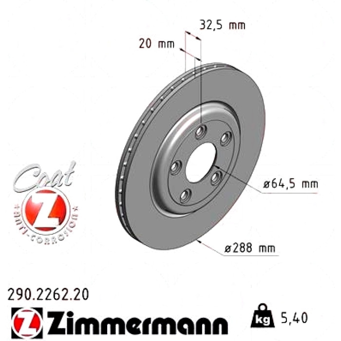 Задний тормозной диск Zimmermann 290.2262.20 на JAGUAR S-TYPE (X200) с двигателем 2.5 V6 дата производства с 10.1998 по 12.2008