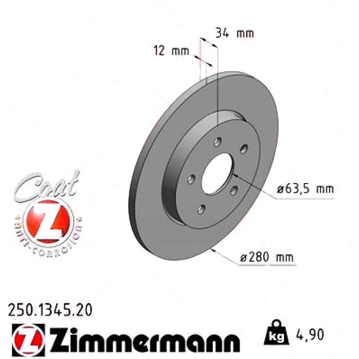 Задний тормозной диск Zimmermann 250.1345.20 на JAGUAR X-TYPE Kombi (X400) с двигателем 2.5 дата производства с 09.2003 по 12.2009