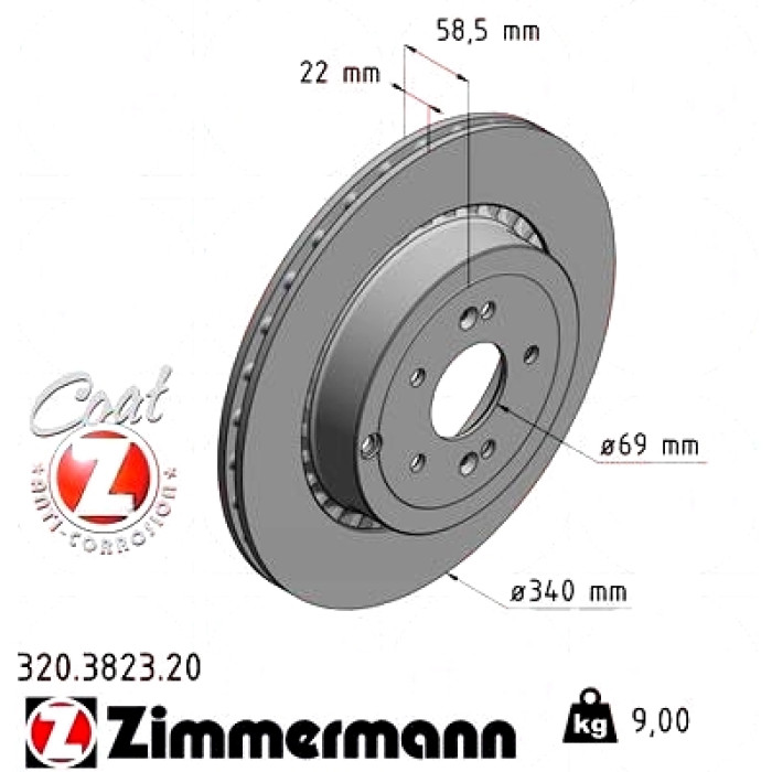 Цена за штуку - тормозные диски меняются парами. Zimmermann Coat Z для KIA STINGER (CK)