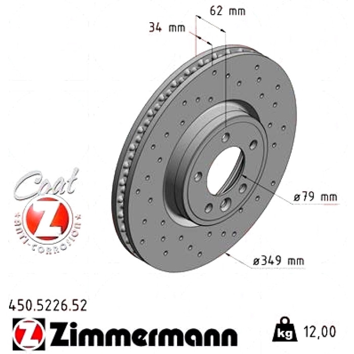 Передний тормозной диск Zimmermann 450.5226.52 на LAND ROVER RANGE ROVER IV (L405) с двигателем 2.0 P400e Hybrid 4x4 дата производства с 08.2012 по до н.в.