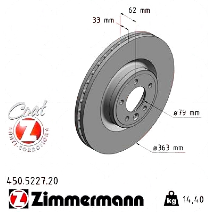 Передний тормозной диск 363x33 на LAND ROVER RANGE ROVER IV (L405) с двигателем 3.0 SCV6 4x4 Zimmermann 450522720