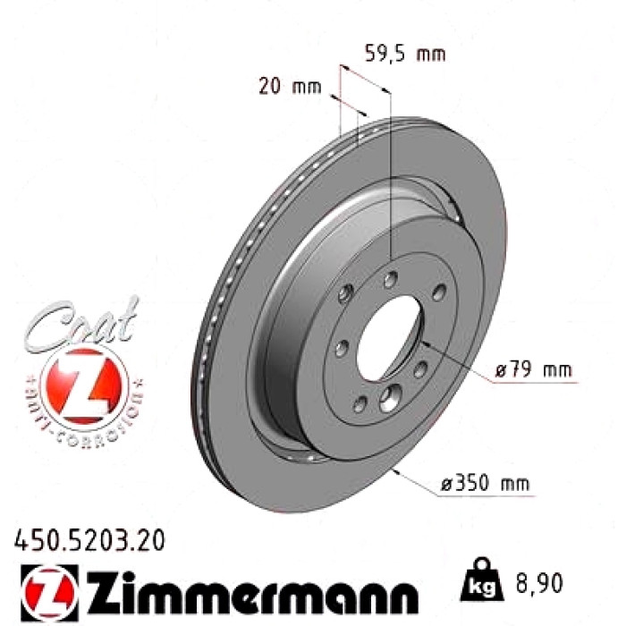 Задний тормозной диск Zimmermann 450.5203.20 на LAND ROVER RANGE ROVER SPORT (L320) с двигателем 2.7 D 4x4 дата производства с 02.2005 по 03.2013