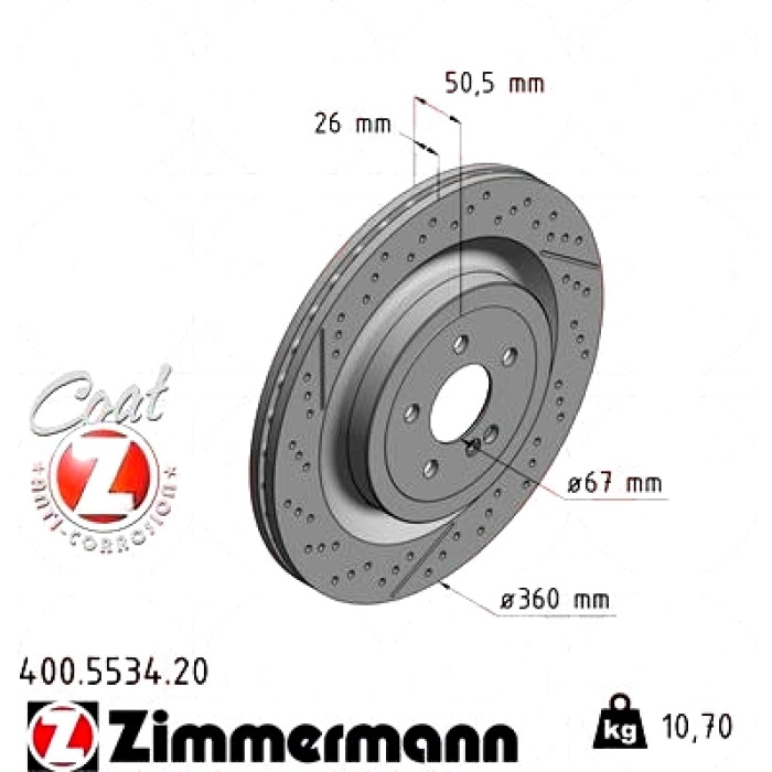Задний тормозной диск 360x26 на MERCEDES-BENZ AMG GT (C190) с двигателем GT S (190.378) Zimmermann 400553420