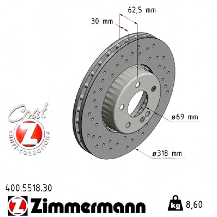 Передний тормозной диск 318x30 на MERCEDES-BENZ C-CLASS (W205) с двигателем C 200 EQ Boost (205.077) Zimmermann Formula S 400551830