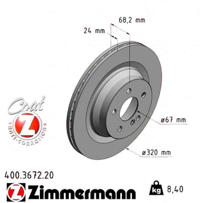 Задний тормозной диск Zimmermann 400.3672.20 на MERCEDES-BENZ CLS (C218) с двигателем CLS 500 4-matic (218.391) дата производства с 01.2011 по 12.2017