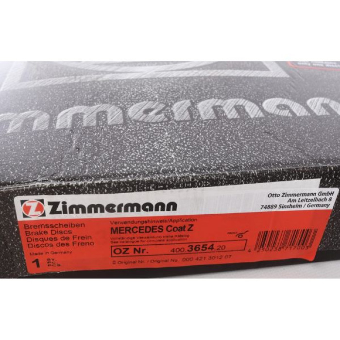 Передний тормозной диск Zimmermann 400.3654.20 на MERCEDES-BENZ E-CLASS КАБРИОЛЕТ (A207) с двигателем E 200 (207.434) дата производства с 01.2010 по 12.2016
