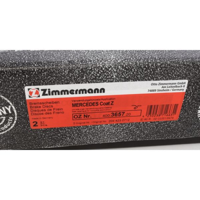 Задний тормозной диск Zimmermann 400.3657.20 на MERCEDES-BENZ E-CLASS КАБРИОЛЕТ (A207) с двигателем E 500 (207.472) дата производства с 01.2010 по 12.2016