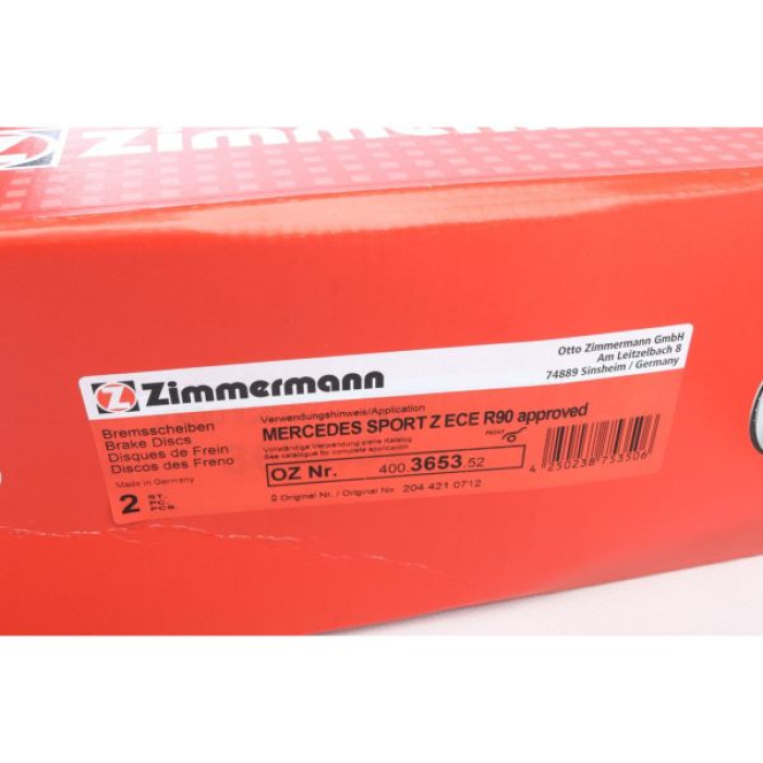 Спортивный передний тормозной диск Zimmermann Sport Z 400.3653.52 на MERCEDES-BENZ E-CLASS КУПЕ (C207) с двигателем E 250 CDI / BlueTEC / d (207.303, 207.304) дата производства с 01.2009 по 12.2016