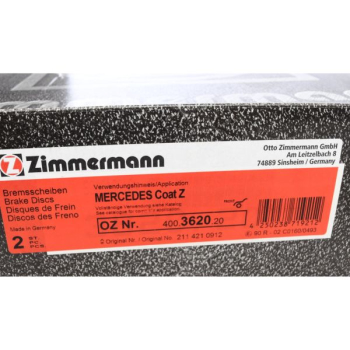Передний тормозной диск Zimmermann 400.3620.20 на MERCEDES-BENZ E-CLASS T-Model (S211) с двигателем E 230 T (211.252) дата производства с 02.2003 по 07.2009