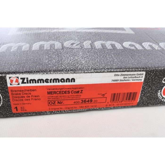Передний тормозной диск Zimmermann 400.3649.20 на MERCEDES-BENZ GL-CLASS (X164) с двигателем GL 320 CDI 4-matic (164.822) дата производства с 09.2006 по 12.2012