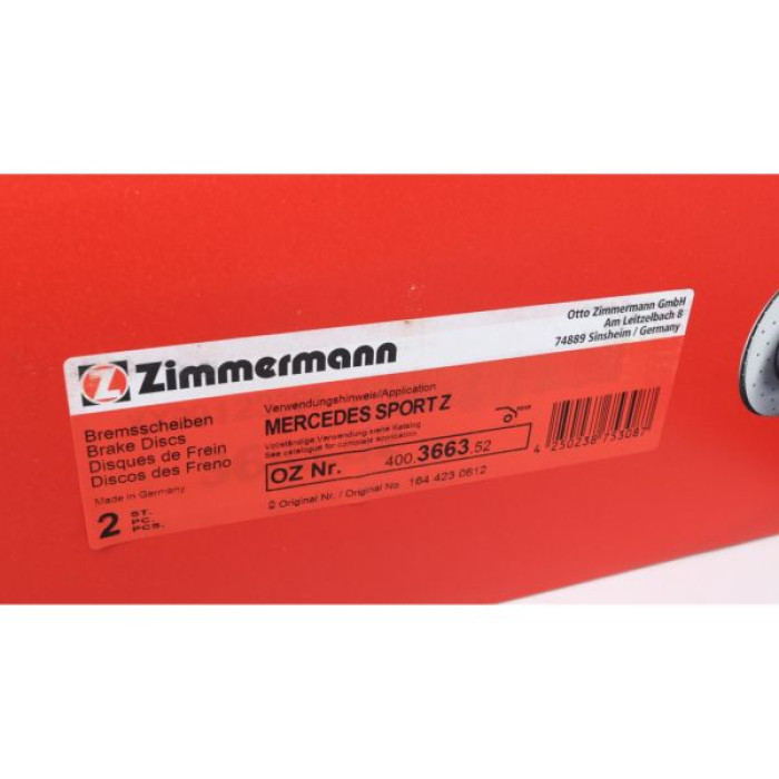 Спортивный задний тормозной диск Zimmermann Sport Z 400.3663.52 на MERCEDES-BENZ GL-CLASS (X164) с двигателем GL 350 CDI 4-matic (164.823) дата производства с 09.2006 по 12.2012