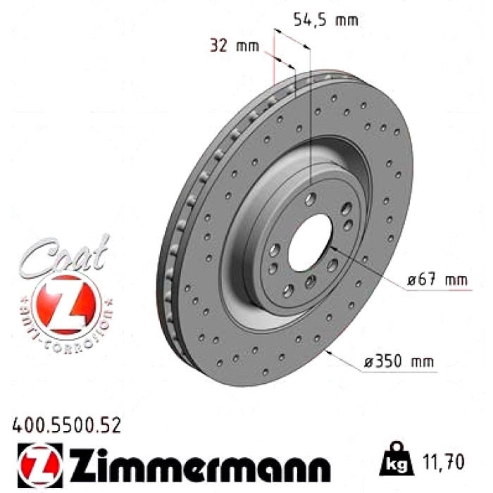 Спортивный передний тормозной диск с перфорацией 350x32 на MERCEDES-BENZ M-CLASS (W166) с двигателем ML 350 4-matic (166.057) Zimmermann Sport Z 400550052