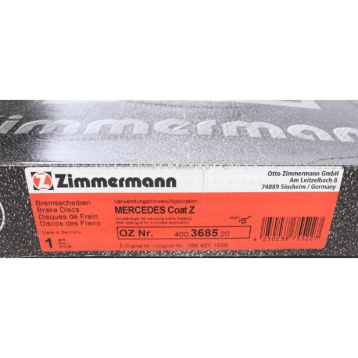 Передний тормозной диск Zimmermann 400.3685.20 на MERCEDES-BENZ M-CLASS (W166) с двигателем ML 350 BlueTEC 4-matic (166.024) дата производства с 06.2011 по 12.2015