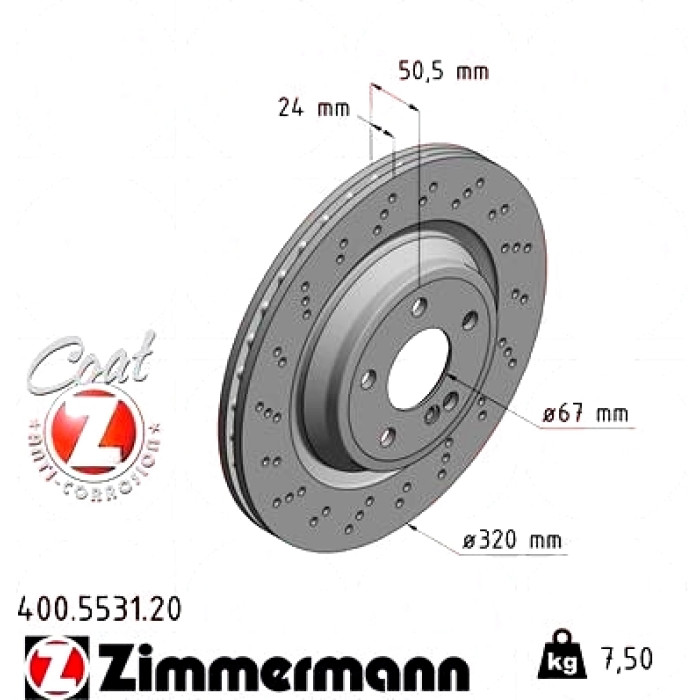 Задний тормозной диск Zimmermann 400.5531.20 на MERCEDES-BENZ SL (R231) с двигателем 350 (231.457) дата производства с 01.2012 по до н.в.