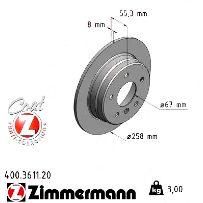 Задний тормозной диск Zimmermann 400.3611.20 на MERCEDES-BENZ VANEO (414) с двигателем 1.7 CDI (414.700) дата производства с 02.2002 по 07.2005