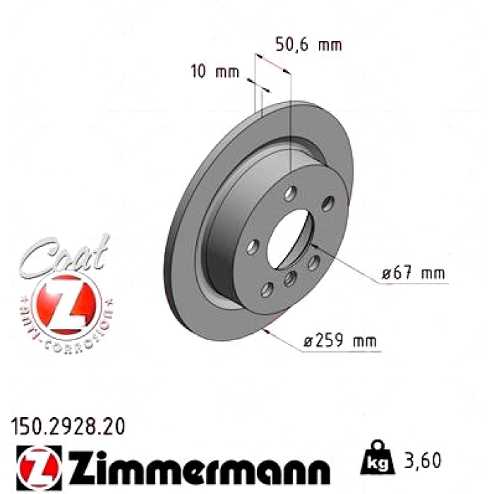 Задний тормозной диск 259x10 на MINI MINI (F56) с двигателем Cooper SD Zimmermann 150292820
