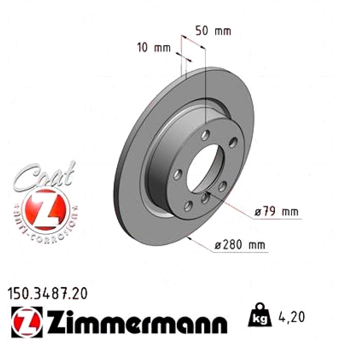 150.3487.20 Zimmermann Задний тормозной диск 280x10 на MINI MINI PACEMAN (R61) с двигателем Cooper D ALL4
