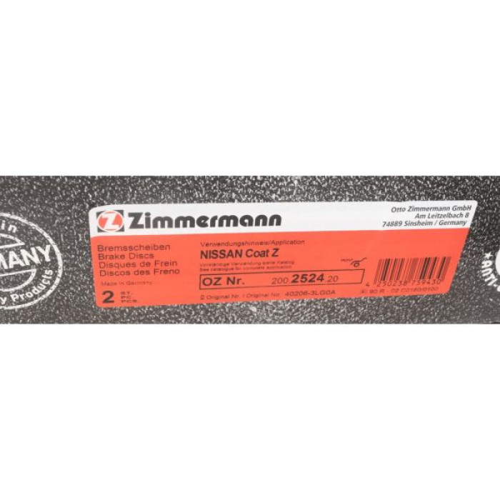 Передний тормозной диск Zimmermann 200.2524.20 на NISSAN EVALIA АВТОБУС с двигателем 1.5 dci (M20, M20M) дата производства с 07.2010 по до н.в.